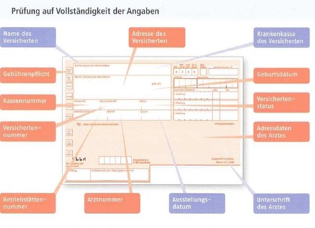 Um den Kostenträger eindeutig zu kennen (und ihre Rabattverträge zu berücksichtigen), benötigen wir Name der Krankenkasse und Kassen-Nr. Diese dürfen wir, wenn wir sie beim Patienten erfragen können, ergänzen.